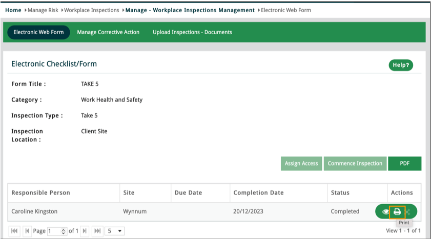 Logo has been added to the Electronic Inspection Checklist and will display when Printed from within the Electronic Web Form and emailed to relevant persons.