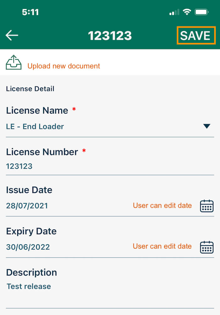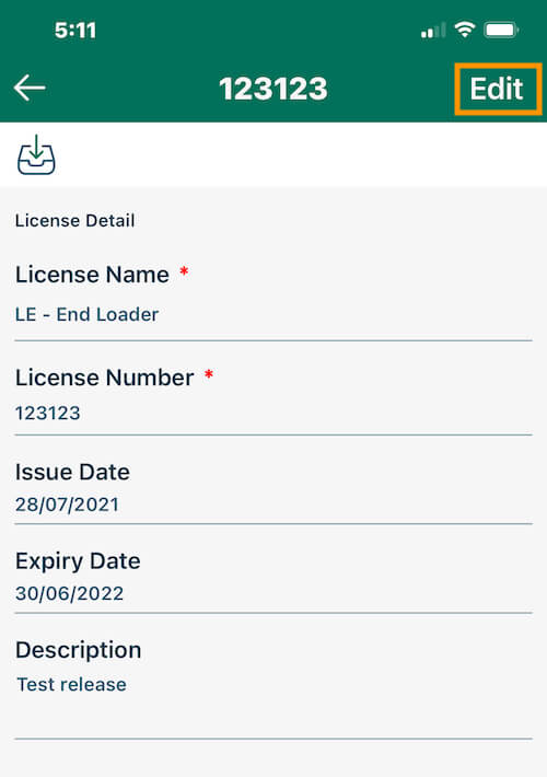 The user is to click into the license/certificate, click on the Edit Button update information and user the camera on phone to take an image of licence / certificate Upload new document and Save.